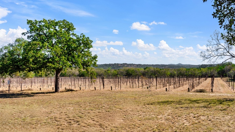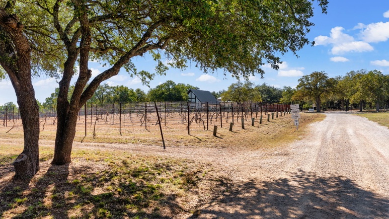 At total of +/- 46 acres and approximately 8 acres of established vineyards in the heart of the Texas Hill Country, a highly desirable wine-tourism region known for scenic vineyard landscapes and agritourism appeal. Eight acres of mature vines, with nine varietals. Plenty of room for future expansion, enhancing its appeal as both a lifestyle business and leisure destination.